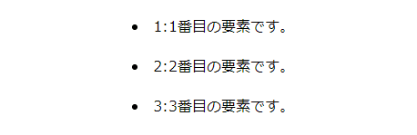 $html = "<li><div>" . $i . ":</div><div>" . $i . "番目の要素です。</div></li>";