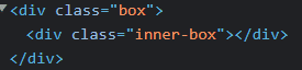 .box要素が青いブロックなので、その上部、つまり対象の要素の直前に、.inner-boxを追加できています。