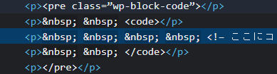 コードブロックでは、<code>タグを<pre>というタグで囲んでいますね。