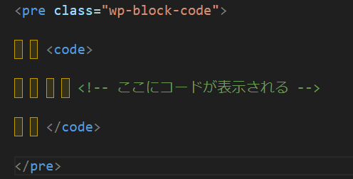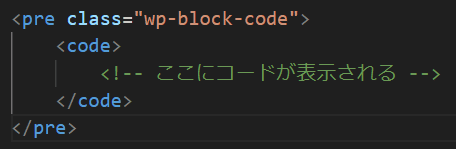 コードブロックの場合は、以下のようなタグの構造で出力されます。